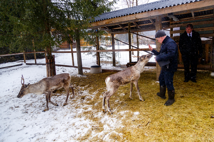 Лосей же зимой здесь кормят сушеными листьями ивы, березы, рябины, а так же сухим сеном, картофелем и ячменем.