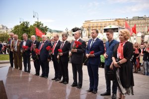 В день памяти и скорби коммунисты во главе с лидером партии Г.А. Зюгановым возложили цветы к могиле Неизвестного солдата. В церемонии возложения приняли участие представители Общероссйского общественного движения «Всероссийский Женский Союз-Надежда России» во главе с председателем ООД «ВЖС» Ниной Александровной Останиной