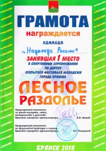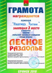 С 6 по 8 июля в посёлке Антоновка Бежицкого района Брянской области проходил традиционный открытый фестиваль молодёжи города Брянска «Лесное раздолье». В этом году его темой стал популярный девиз «Назад в СССР», поэтому атрибуты советских времён присутствовали во всём: в форме одежды, тематике конкурсов, музыкальном сопровождении и, конечно, в оформлении бивуаков. Команда брянского отделения «ООД -Надежда России» приняла участие в фестивале «Лесное раздолье»