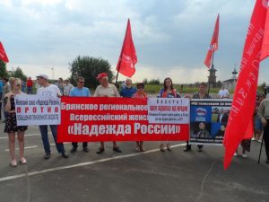 28 июля 2018, в Брянске, как и во многих городах страны, прошла акция протеста против повышения пенсионного возраста, в которой активными участниками были женщины Брянского регионального отделения ООД «ВЖС» под руководством председателя Амиранашвили Марины Георгиевны.