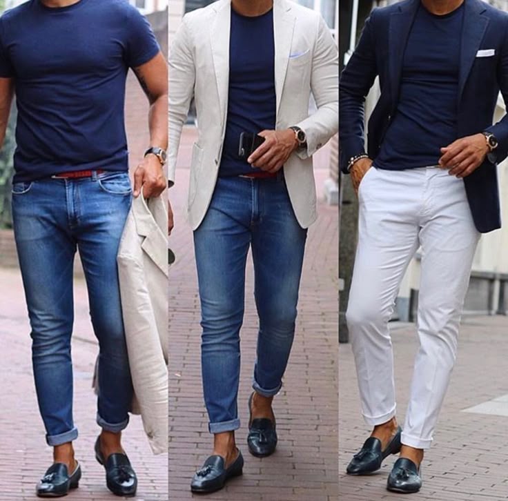 С чем надеть джинсы, чтобы выглядеть элегантно? Надевать джинсы можно с пиджаком и галстуком, а также жилетом и рубашкой. Рубаху стоит заправлять, а на джинсах необходим пояс. В летнее время можно предпочесть более светлый тон низа – джинсы кремового, бежевого или голубого тонов. Кроме того, учитывайте и время проведения мероприятия. По правилам светского этикета, которые не стоит забывать молодым поколениям, дневные официальные церемонии бракосочетания позволяют более щадящие правила одеяния, в то время как вечерние требуют соблюдения довольно жестких правил.
