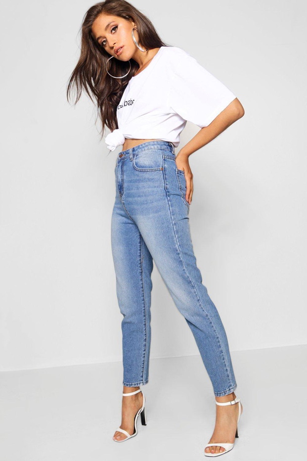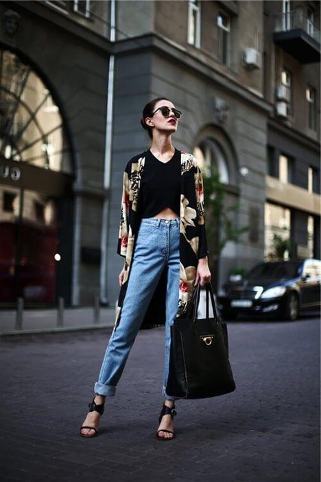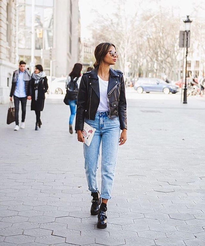 Конечно же, различные топы, майки в бельевом стиле, футболки и водолазки – всегда удачный выбор к джинсам-mom. Дополнить образ можно приталенным или прямым пиджаком, кардиганом и косухой, чтобы выйти на прогулку в прохладную погоду.