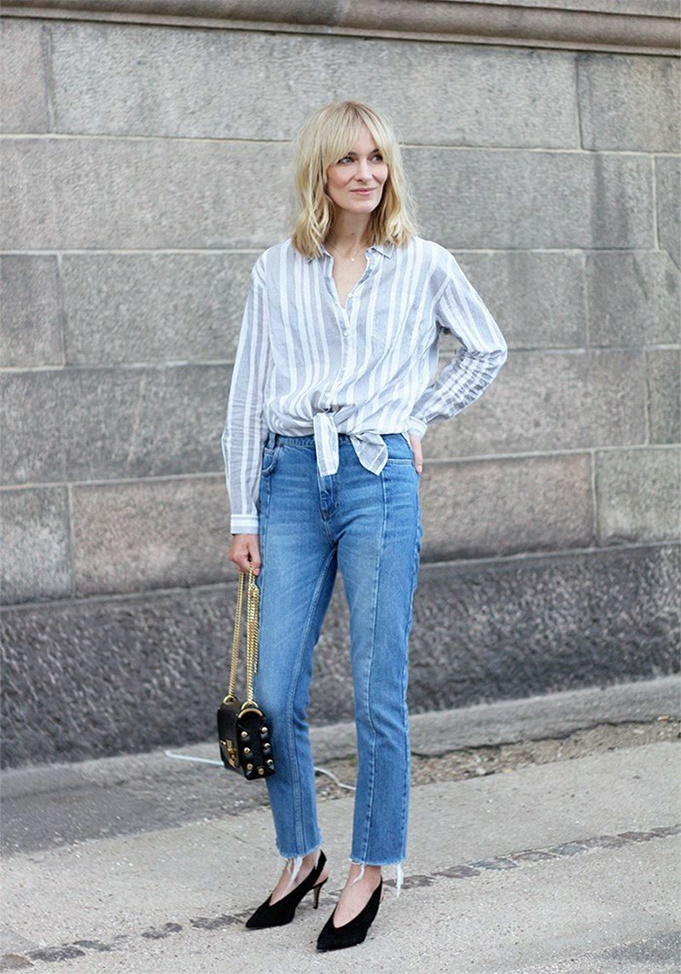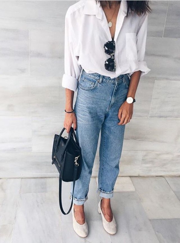 Рубашки и мом – такое же удачное сочетание, как мороженое и шоколад. Это образ классической американской домохозяйки. Но все решают детали. Завяжите рубашку узлом и вы уже не домохозяйка, а уверенная и сексуальная мамочка.