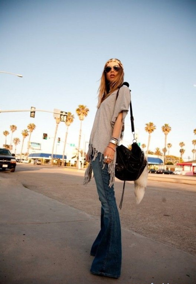 Если к клешам подобрать расклешенный верх, вы получите образ хиппи.