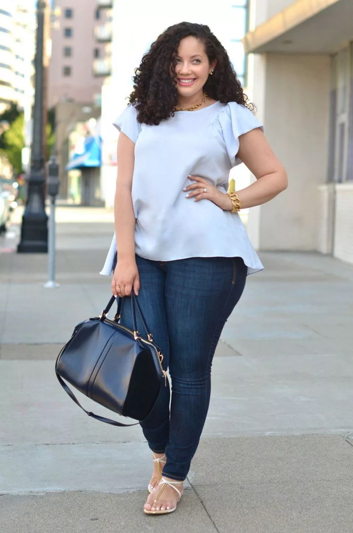 Линия нарушается, когда доходит до акцента на талии. У «яблочниц» нет сильного изгиба между грудью и бедрами, поэтому им лучше выбирать фасон «банан» или moms.