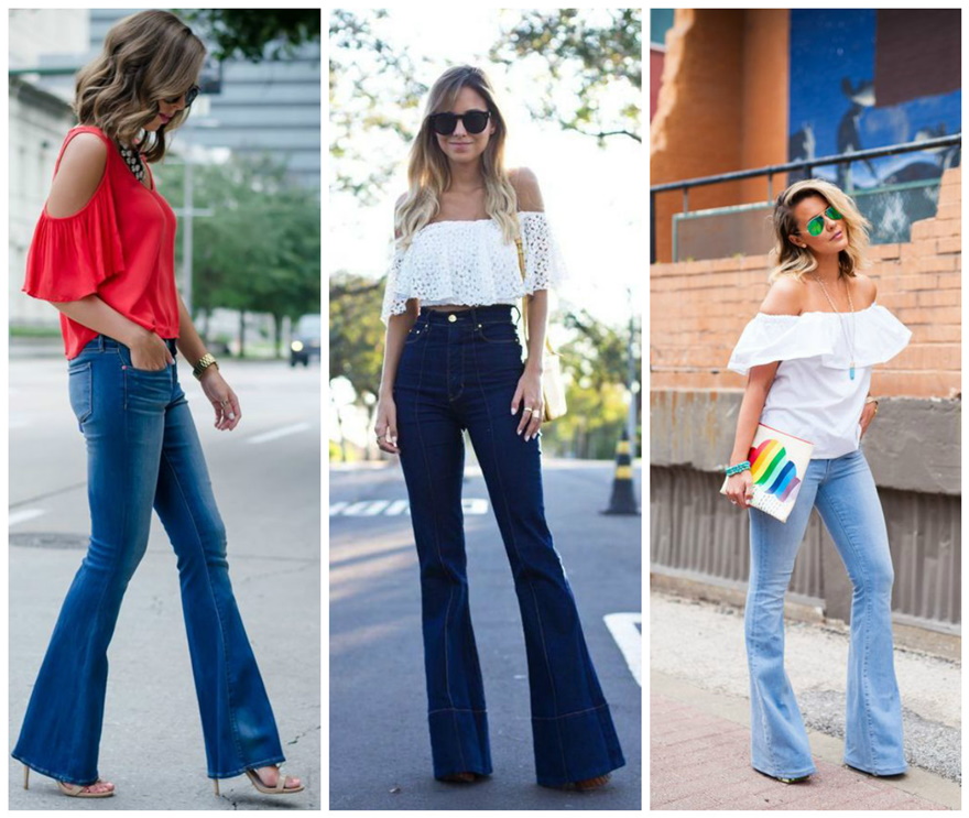 Подбирая верх к джинсам-клеш, выбирайте прямые фасоны. С такими брюками идеально сочетаются прямые и полуприлегающие жакеты, пальто, тренчи, короткие куртки. Блузки, рубашки лучше носить заправленными.