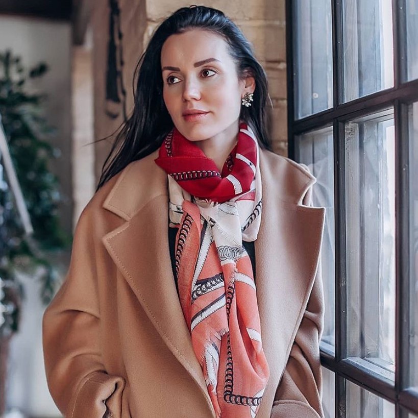 Шарф с ярким принтом требует от девушки более яркого макияжа, чтобы не потеряться на его фоне. Кроме того, если вы не хотите привлекать к внешности особое внимание, пожалуй, лучше вообще отказаться от броского шарфа в пользу моделей более спокойных расцветок.