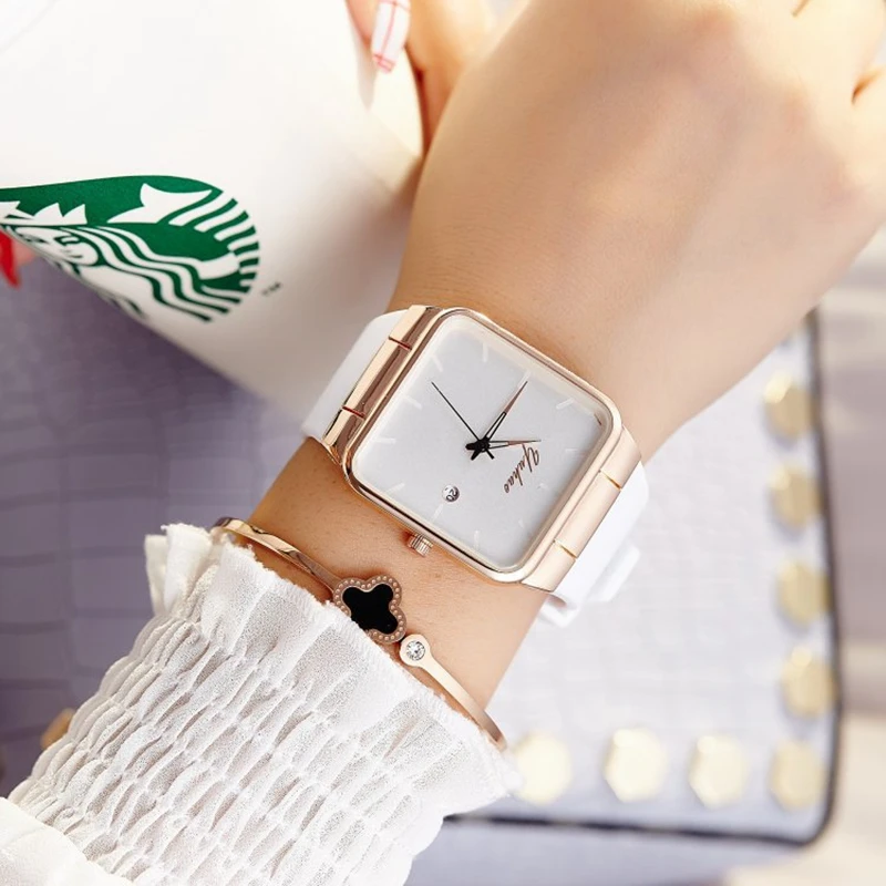 Популярны и модели с квадратными корпусами, отлично подходящие и к джинсовой куртке, и к классическому костюму. Такие модели выпустили Chanel и вездесущие D&G. Помимо формы корпуса, их отличительной особенностью является скромный дизайн циферблата. Вся «изюминка» таких моделей в оригинальных материалах ремешка и необычной структуре браслета.