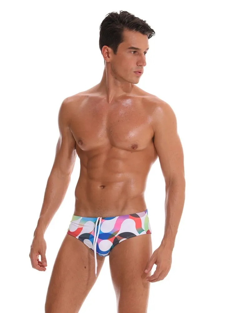 Нам нравится этот принт в стиле ретро и застежка на молнию и кнопку. Это действительно похоже на пару шорт, и вы будете выглядеть остро в воде и на суше, поэтому этот стиль плавок — наш любимый. Полиэфирный материал прочный и немного жесткий, поэтому они будут хорошо прилегать к телу с аккуратной посадкой.