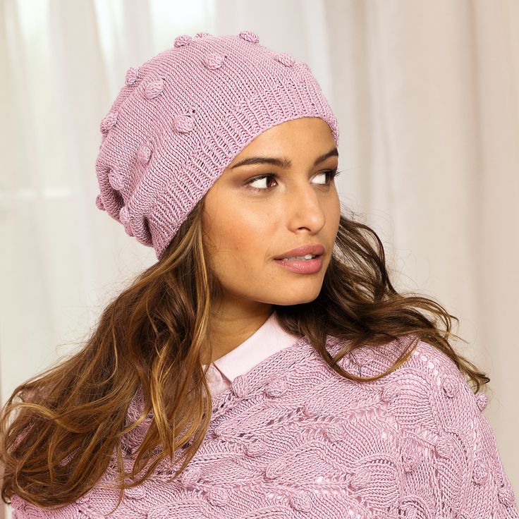 Шапки с крупной вязкой акцентируют внимание на женственности и хрупкости ее обладательницы, корректирую форму лица и создают визуальный эффект тонкой шеи.