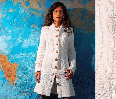 Вязаное пальто с аранскими узорами