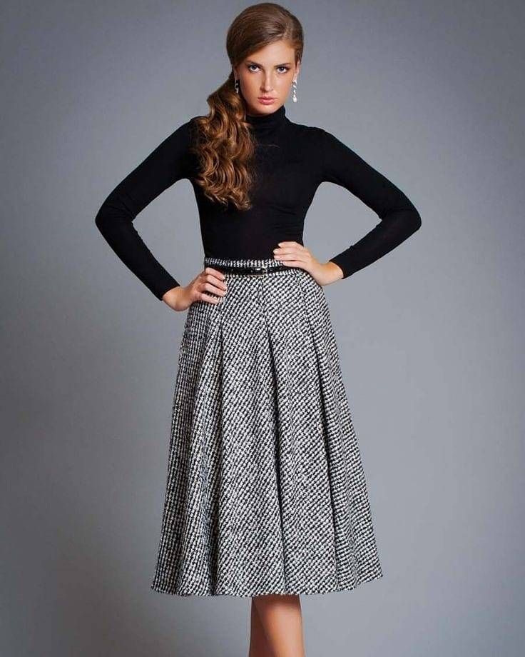 С наступлением холодов большинство женщин предпочитают носить более практичные и теплые брюки и леггинсы. Однако и модные юбки осенью и зимой не дадут замерзнуть, одновременно позволив выглядеть даже в эту пору женственно и стильно. Теплые и плотные материалы (шерсть, кожа, твид, вельвет) в тандеме с основными трендами (длина макси, многослойность, стежка) сделают наряд теплым и стильным.