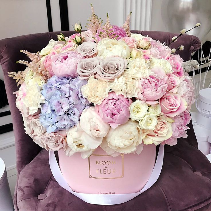 Шляпная коробка. Тренд на шляпные коробки стал настоящим переворотом во флористике, что нашел множество почитателей, как у профессионалов, так и любителей всего прекрасного. Монохромные и сложные разноплановые цветочные композиции в коробке будут чудесны. Цветы в коробке часто дополняются креативными и стильными веревочками, что позволяет удобно нести модные композиции из цветков.
