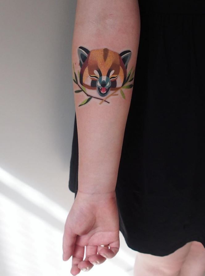 Художник-татуировщик воссоздает предмет (например, изображенную здесь лису) в виде произведения кубизма.