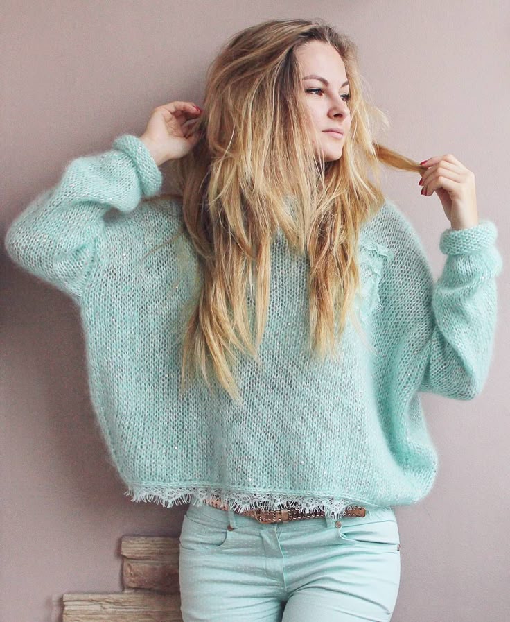 Носить модные свитера 2022 2023 в этом сезоне можно с кожаными поясами, комбинировать их с палантинами такой же вязки. Интересно сочетать их с прозрачной юбкой, джинсовыми, кожаными юбками и брюками. Тонкие свитера дополнит узкая юбка или широкие брюки.