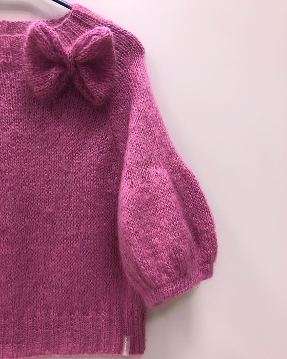 СХЕМА ВЯЗАНИЯ ЭТОЙ МОДЕЛИ НАХОДИТСЯ ТУТ >> Вязаный свитер оверсайз с тонкого мохера спицами