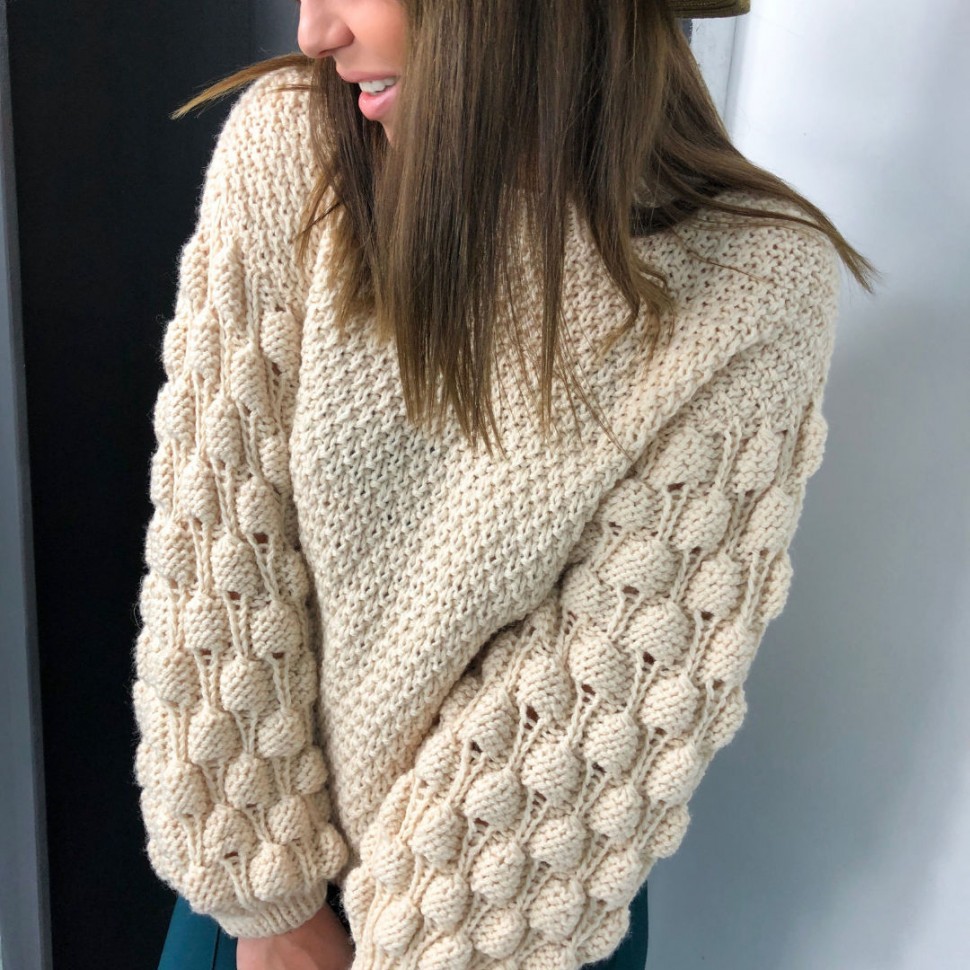 ОПИСАНИЕ ВЯЗАНИЯ >>Свитер лицевыми петлями с узором «шишечки»