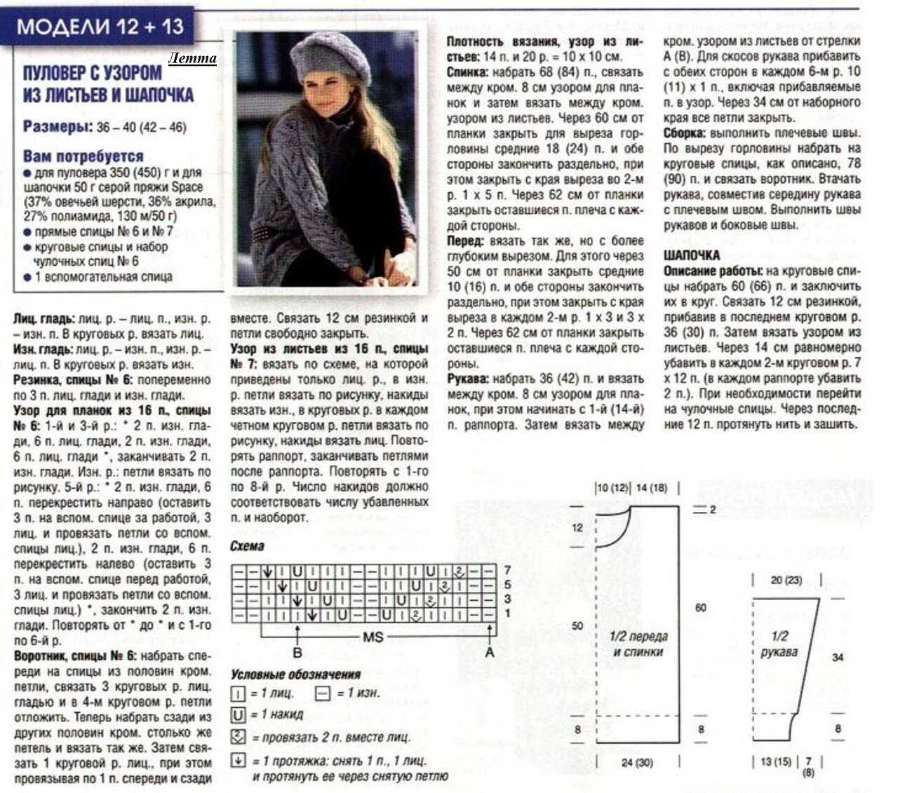Еще одна модная модель шапочки спицами, называется она Изабель. Схема узора примерная, но подходящая.