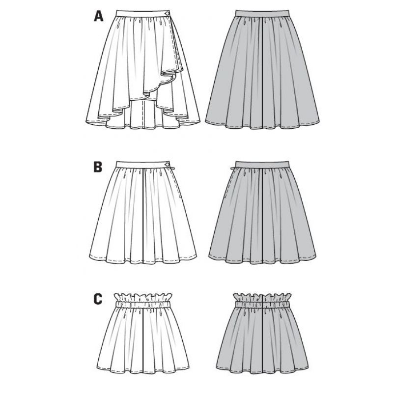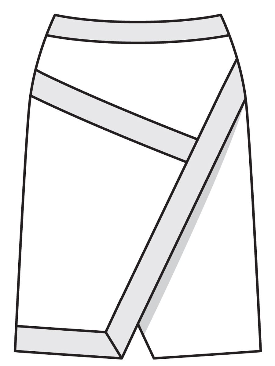 Верх юбки с запахом (фото 4) в обоих случаях можно обработать широкой резинкой в тон ткани, так же, как это делается в шортах, предварительно заложив и заметав запах.
