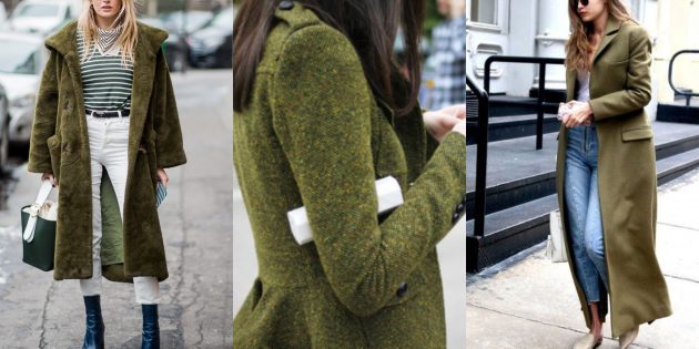 pinterest.comЭтот цвет — нечто среднее между оливковым и хаки. Не совсем стандартный выбор для нейтральной базовой палитры Pantone, но тем не менее: именно гуакамоле — один из наиболее востребованных оттенков сезона. Дизайнеры предпочитают использовать его в оформлении верхней одежды — пальто, тренчей, удлинённых шуб.