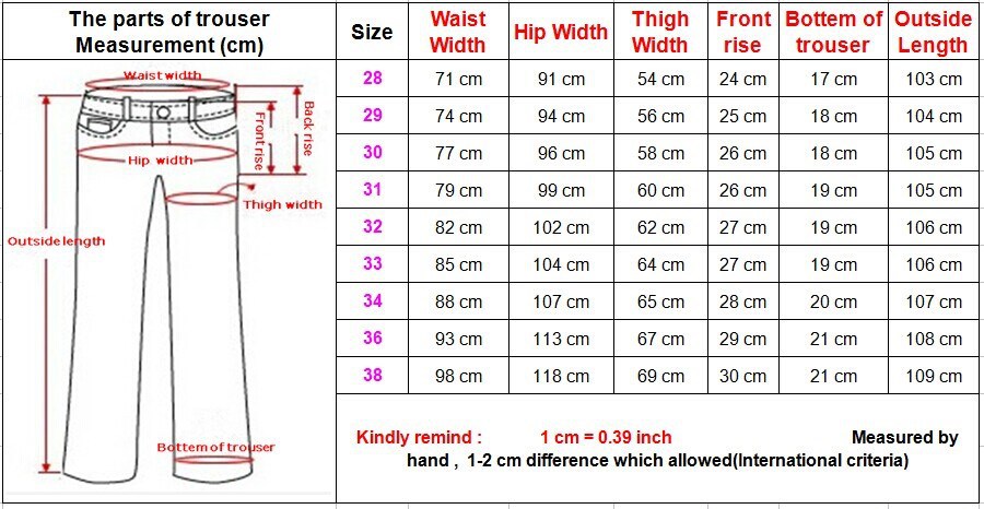 Размер мужских джинсов проще, чем женских. Размер мужских джинсов равен измерению талии и измерению внутреннего шва. Я бы хотел, чтобы размеры женских джинсов были такими простыми.