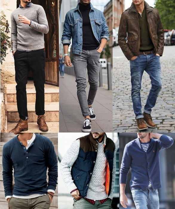 Кожаные туфли придадут мужчине больше солидности. А вы получите больше комплиментов от представительниц прекрасного пола. - Многослойность. Кэжуал-стиль позволяет дополнять рубашку свитером, шарфом, курткой или кофтой. Многослойные наряды выглядят эффектнее, хотя важно научиться правильно комбинировать вещи. Не бойтесь экспериментировать с гардеробом, пока не найдете удачное сочетание.