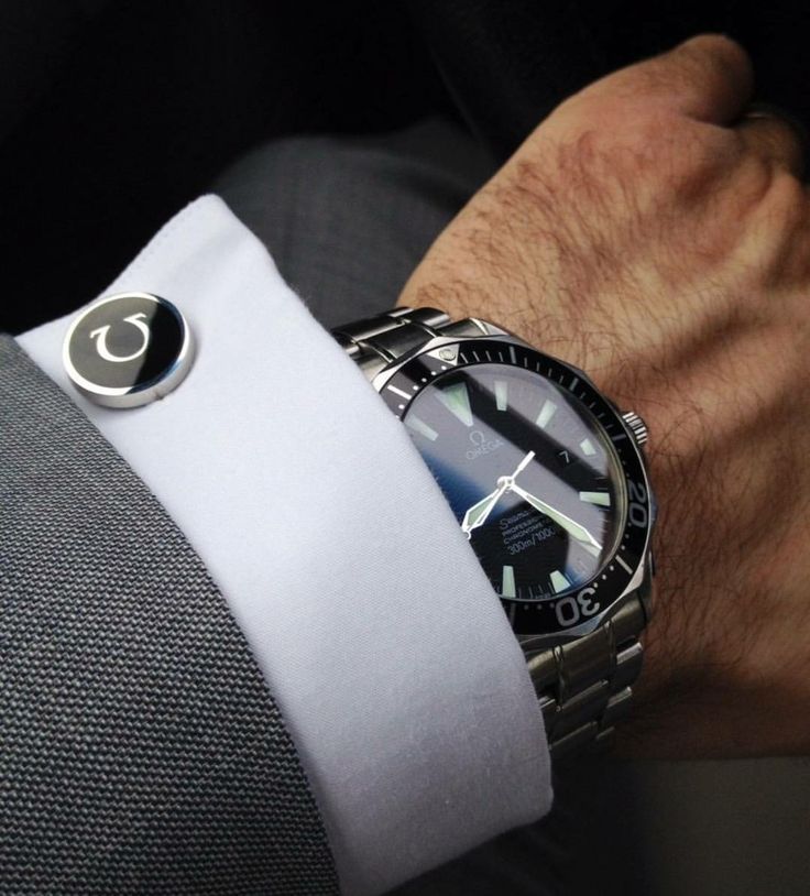 3. Запонки. В офис и на переговоры следует отдать предпочтение запонкам с лаконичным дизайном. А вот на торжественные мероприятия можно позволить себе запонки более броского и интересного дизайна. В любом случае надевают их на рубашку без пуговиц с двойной манжеткой.