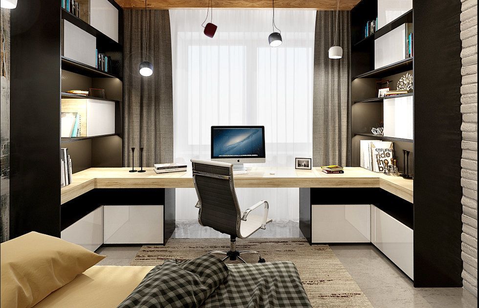 Вторая обязательная зона в мужской комнате — рабочее место.