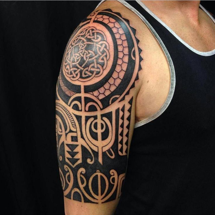 Кельтский узор на мужском плече символизирует решимость сражаться за свой дом, семью, родных и близких. Эскизы на кельтскую тему вы легко найдёте в альбомах реализованных проектов любого мастера тату.