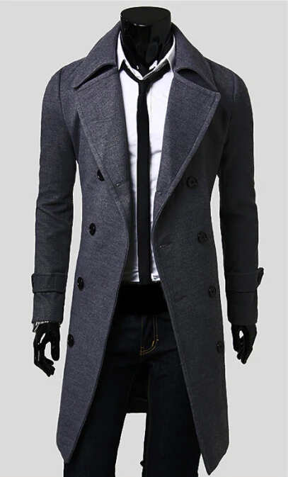 - Достаточно длинный, вместительный и двубортный с 6 или 8 пуговицами