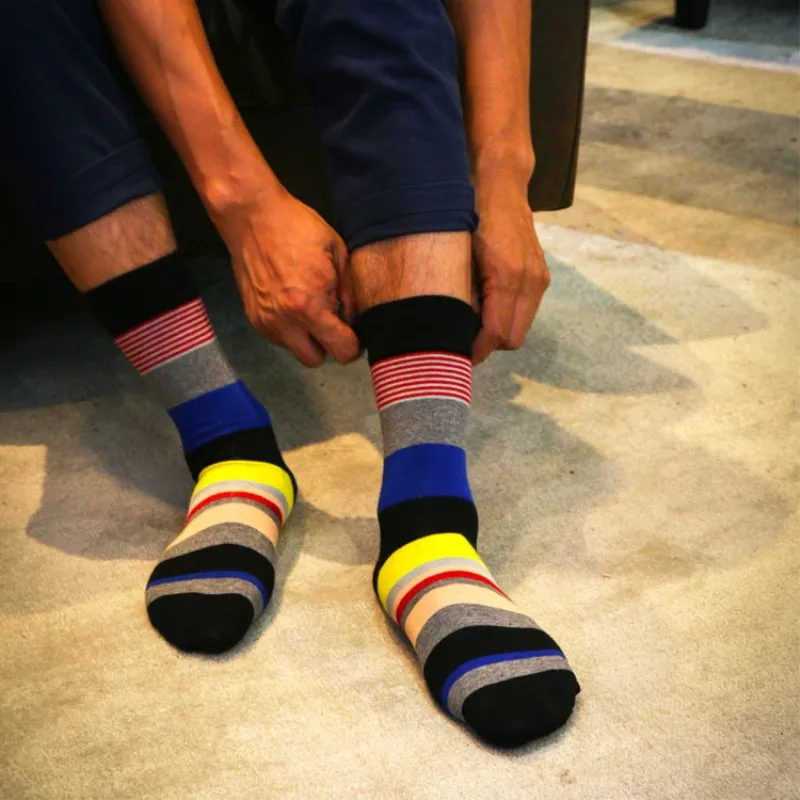 Цветные носки лучше всего надевать для повседневных случаев, чтобы они сочетались с частью вашего наряда. Если вы можете сочетать носки с брюками, это еще лучше.