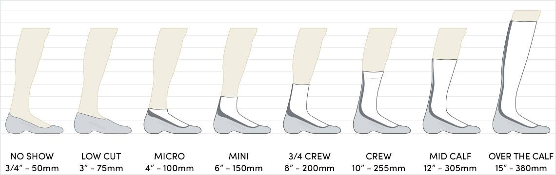 Ниже приведены длины носков в зависимости от случая и одежды: