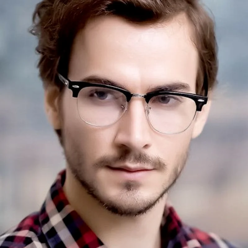 Выберите классическую круглую оправу, чтобы сбалансировать более заметные черты, или попробуйте угловатую оправу, чтобы придать лицу четкие линии.