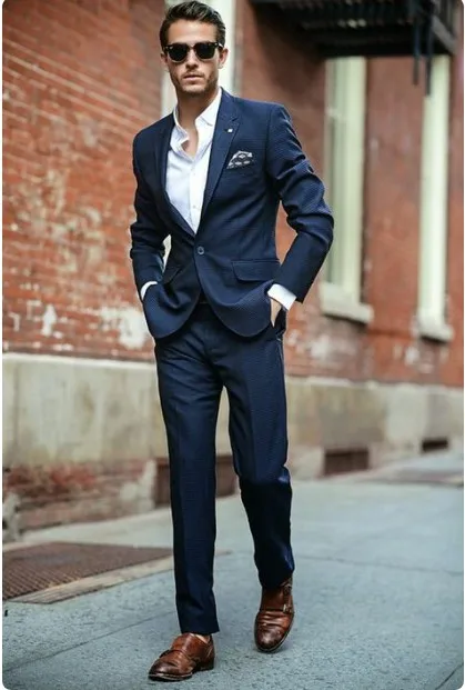 - однобортный пиджак и брюки прямого кроя подойдет мужчинам более крепкой комплекции,