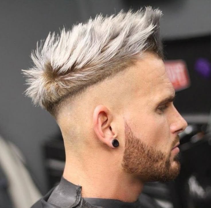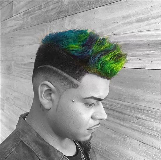 Как будут выглядеть такие мужские стрижки? На короткие волосы наносится узор, выбриваются виски, создаются резкие переходы, а на макушке окрашиваются некоторые пряди в яркие цвета. Естественно, выглядеть такая прическа будет удачно на молодом человеке или на мужчине, который работает в сфере моды и креатива.