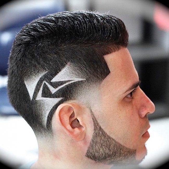 Нестандартность таких стрижек кроется в узоре. Надо постараться придумать его таким, чтобы он выделял владельца прически. Клиент также может сам предложить мастеру вариант рисунка. Однако вне зависимости от выбранного узора, это креативная мужская стрижка.