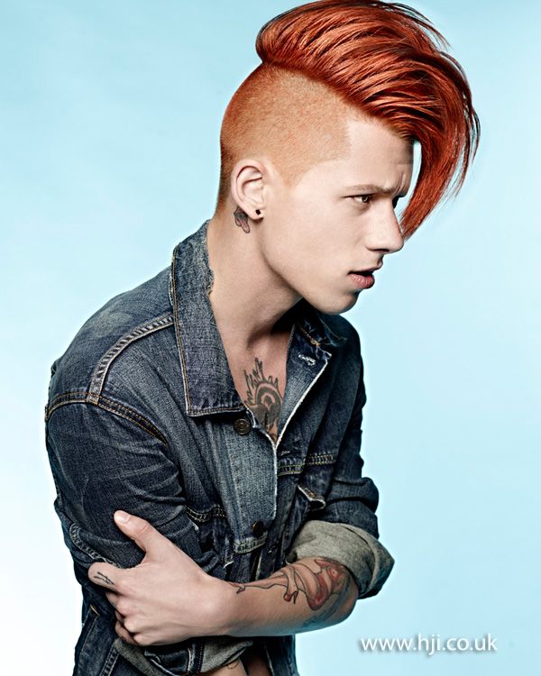 Самые длинные из них формируют челку, оригинально выглядящую на фоне выбритых мужских висков.