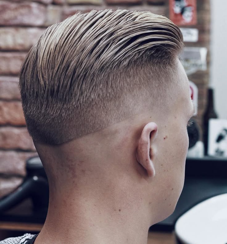 В классической стрижке виски выбриваются очень коротко, а остальная часть волос имеет плавный переход, который поднимается над ушами.
