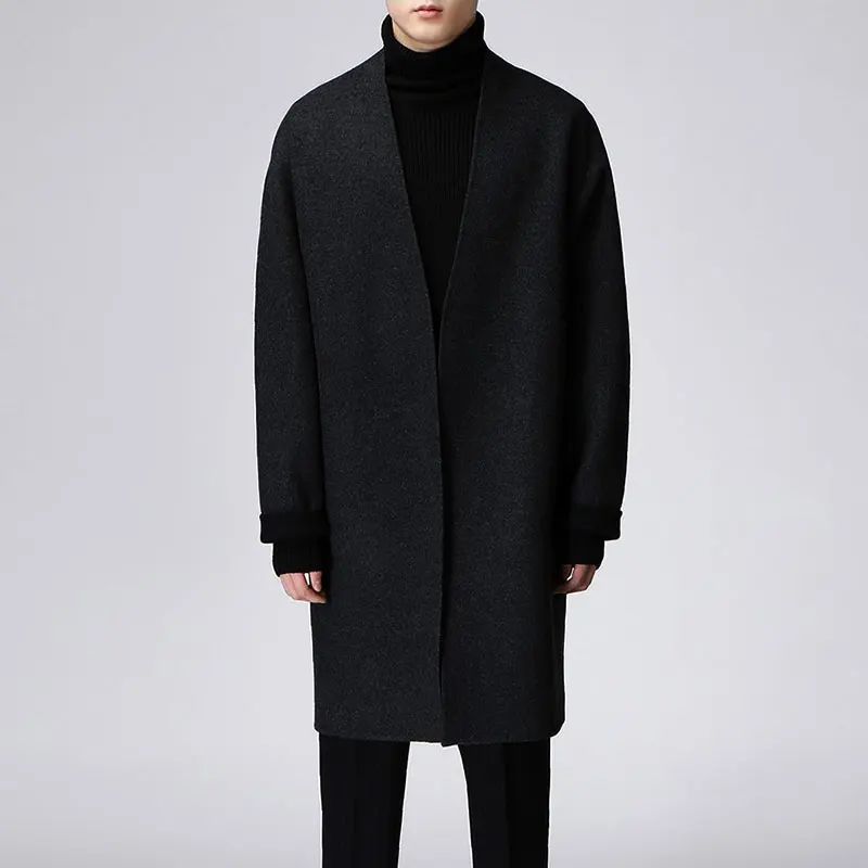 Мужское зимнее кашемировое черное пальто, мужское классическое пальто весна осень еврозима XL