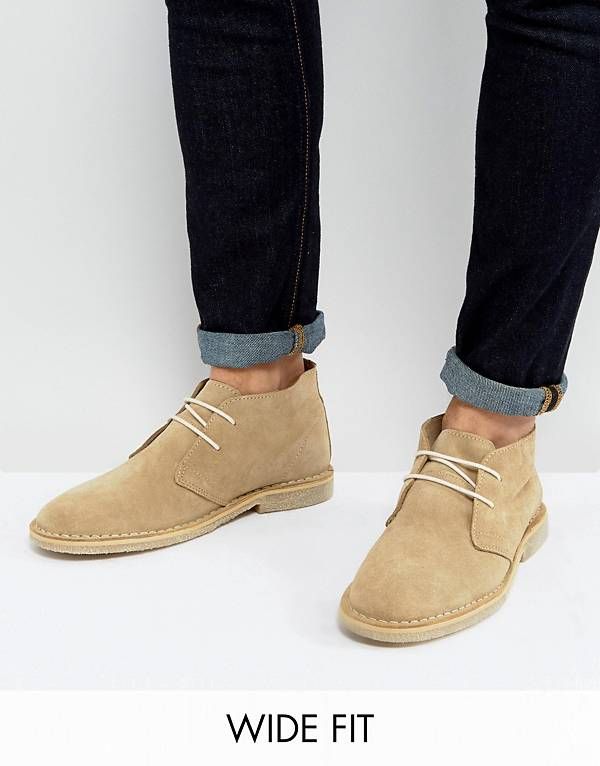 Дезерты – повседневная обувь, которую не стоит надевать с костюмом. В комплекте с ними лучше всего смотрятся джинсы или брюки без стрелок. Чтобы выглядеть стильно и современно, многие мужчины носят ботинки дезерты с укороченными брюками чиносами.