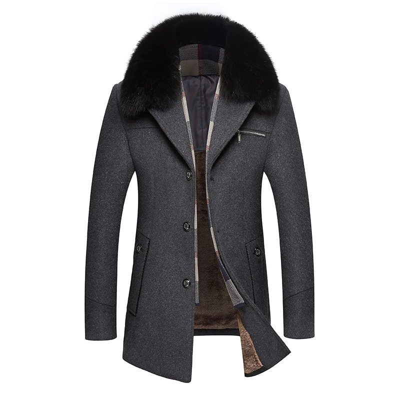 Мужское зимнее шерстяное пальто утепленное классическое с меховым воротником S
