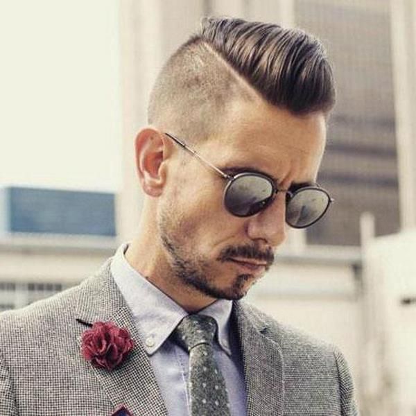 Неординарные личности на выбритой стороне наносят татуировку или делают замысловатый узор. Объемная макушка дополняется прямой или косой челкой; - ретро-стиль – предполагает короткие гладкие виски и длинную макушку. Длинные пряди зачесываются назад. Мужчина похож на гангстера;