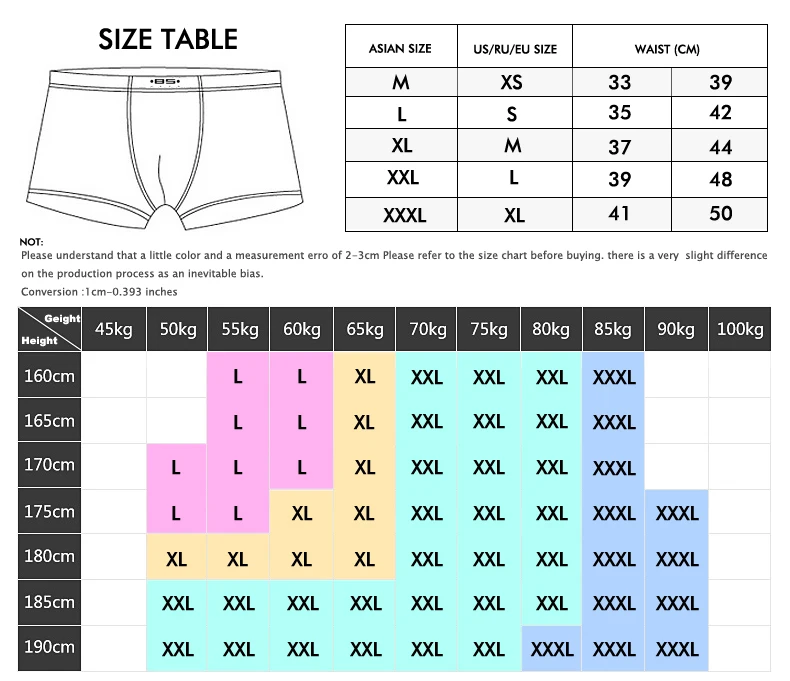 Таблица размеров нижнего белья для мужчин больших и высоких размеров