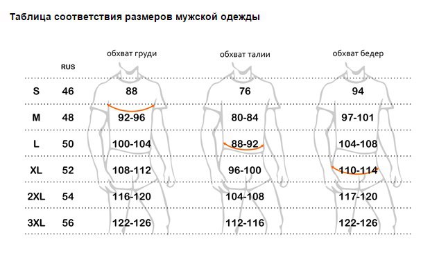 Таблица типовых размеров одежды для мужчин:
