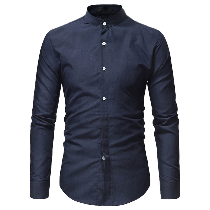Мужская приталенная рубашка ,стойка воротник.(S—XXL)