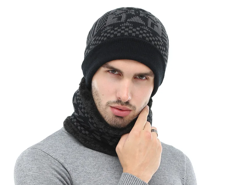 Теплый зимний шарф-кольцо и облегающие шапки мужская шапка манишка зимние мужские шапочки мужские облегающие шапки флисовая вязаная шапка