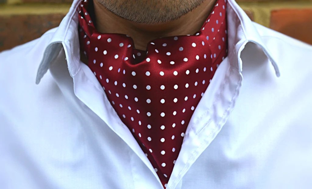 Классическим шейным платком считается аскот — полоска ткани, срезанная наискось. Ее завязывали поверх воротника мужской сорочки так, чтобы треугольник находился на груди, а свободные концы огибали шею и непринужденно ложились под него. Для фиксации использовали броши-заколки из драгоценных материалов, с камнями и жемчугами. Так денди тех времен могли продемонстрировать не только свой достаток и роскошь, но и познания в модных направлениях.