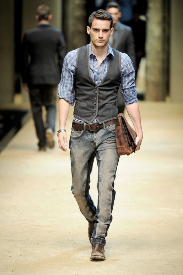 В сравнении с английским луком здесь необходимо придерживаться еще большей строгости в подборе линий и цветов. Фасон должен не обтягивать, но подчеркивать фигуру, особенно подходит мужчинам с атлетическим телосложением и высоким ростом. Внимание к качеству ткани.