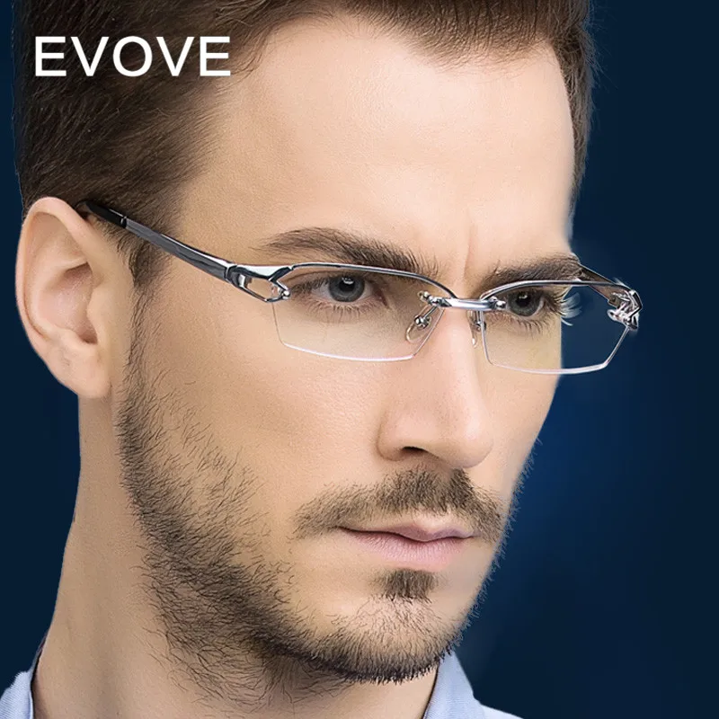 Очки без оправы делают лицо открытым, а антибликовые стекла оправу незаметной.