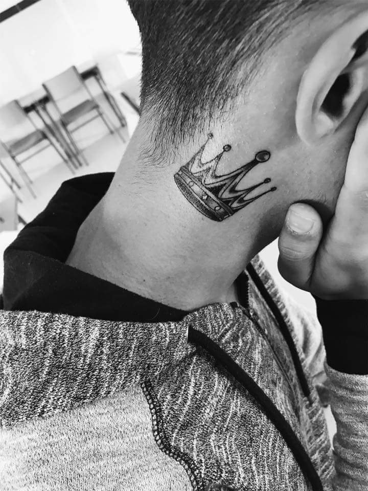 Нанесение татуировки короны на шею – хорошая альтернатива татуировкам на пальцах. Вы можете держать свой знак лидерства на виду, но вы также можете скрыть его в любой момент. Также известно, что татуировки на шее очень нравятся парням.